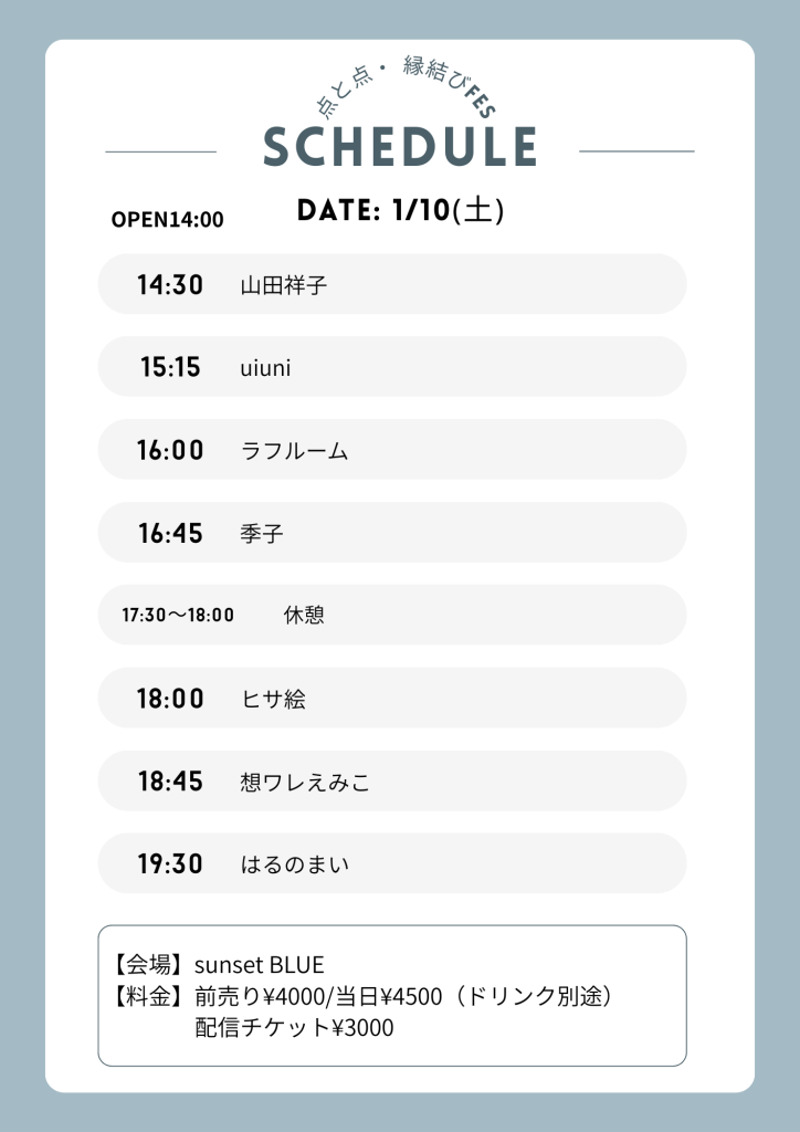 備考: 整列順入場/配信チケットをお求めの際は「お目当てのアーティスト名」をご記載下さい。/はるのまいご予約枠完売の為、現在はキャンセル待ちとなっております。